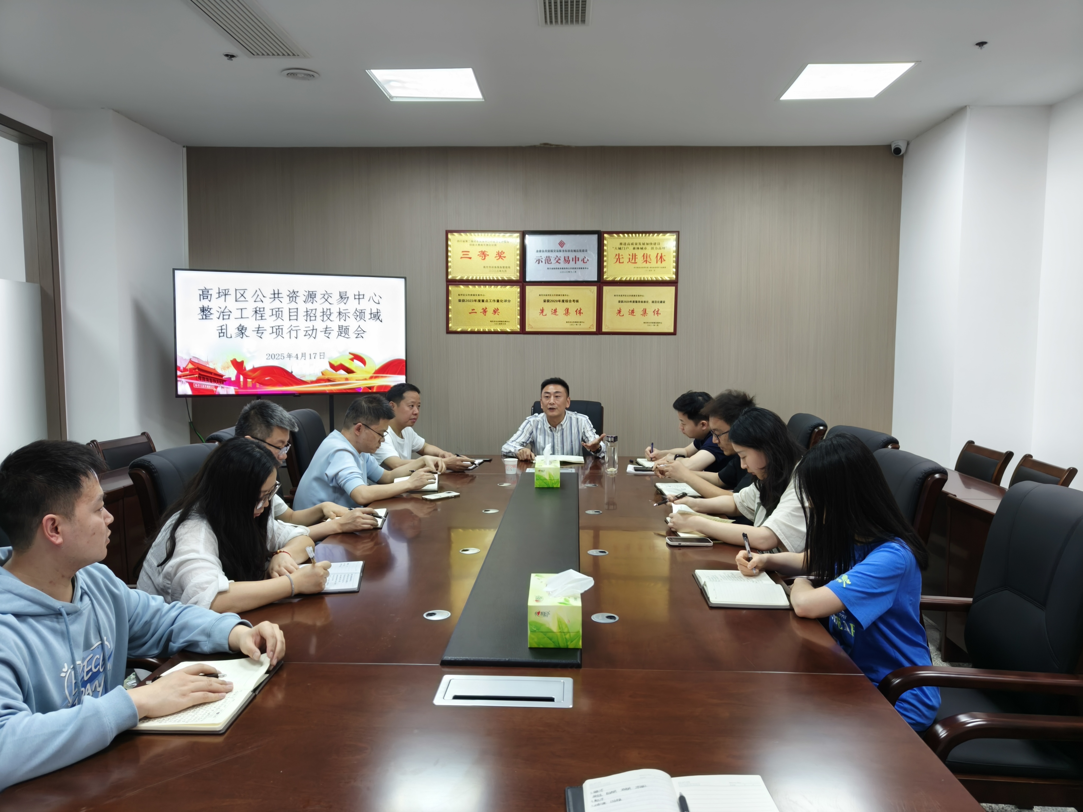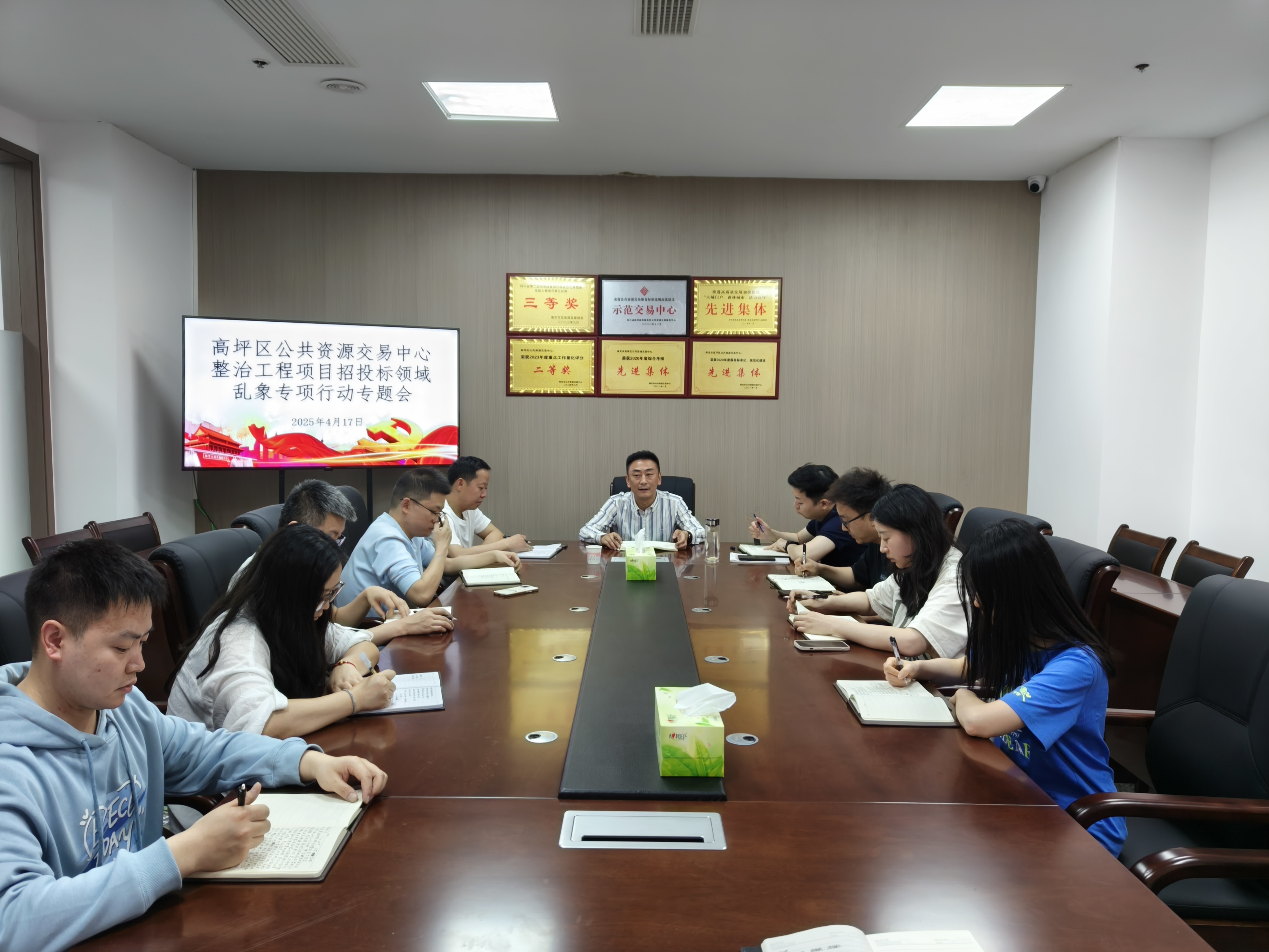 為深入貫徹落實中央、省市關(guān)于整治招投標(biāo)亂象的重要決策部署,進(jìn)一步規(guī)范招投標(biāo)市場秩序,營造公開、公平、公正的公共資源交易環(huán)境,4月17日上午,高坪區(qū)公共資源交易中心召開專題會議,全面部署工程項目招投標(biāo)亂象整治工作。會議由交易中心主任何紅兵主持,中心全體干部職工參加了會議。
