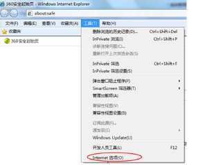 1.打開瀏覽器,在“工具”菜單→“Internet選項(xiàng)”