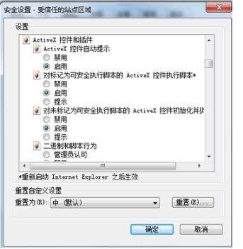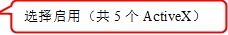 ①會(huì)出現(xiàn)一個(gè)窗口,把其中的Activex控件和插件的設(shè)置全部改為啟用。