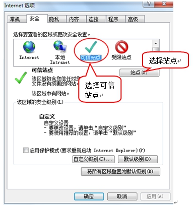 3.點(diǎn)擊綠色的“受信任的站點(diǎn)”的圖片,會(huì)看到如下圖所示的界面: