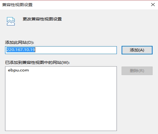 3.4、在“工具”菜單→“兼容性視圖”中添加,系統(tǒng)訪(fǎng)問(wèn)ip地址:220.167.10.19,然后點(diǎn)擊“添加”按鈕完成添加。