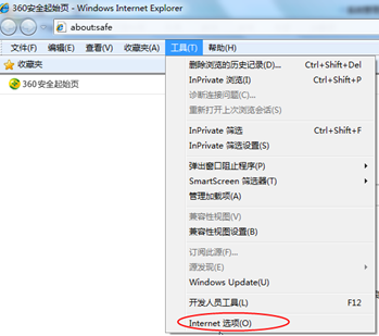 1、打開瀏覽器,在“工具”菜單→“Internet選項”