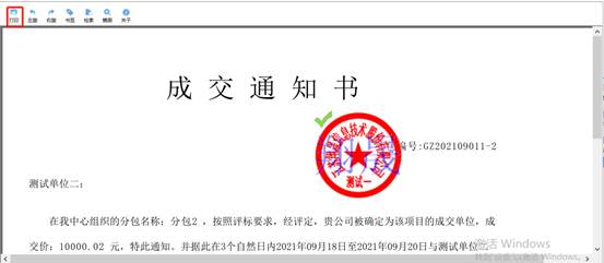 2、打印招標(biāo)結(jié)果通知書頁面,可以查看并打印通知書,如下圖: