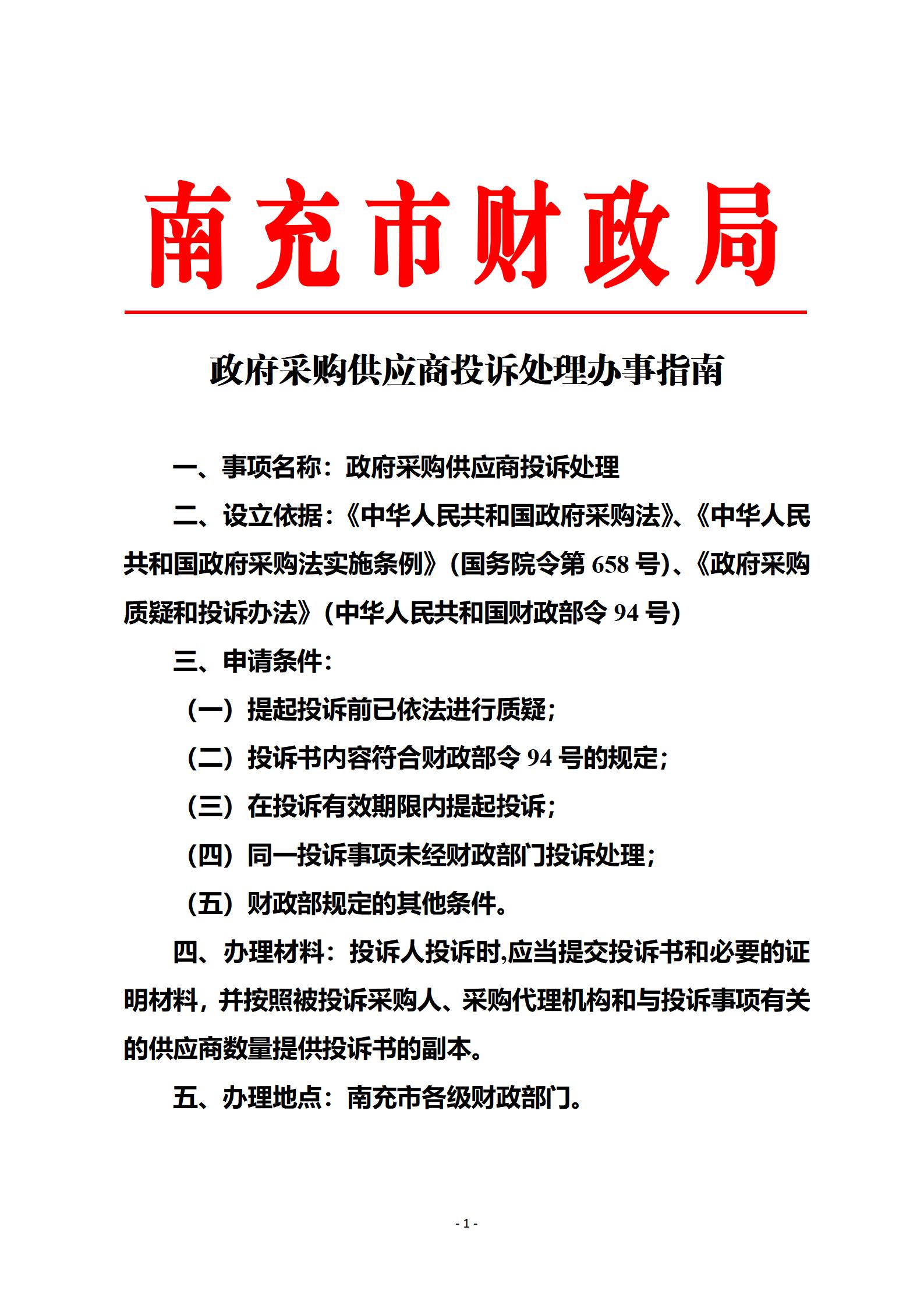 南充市政府采購供應(yīng)商投訴處理辦事指南
