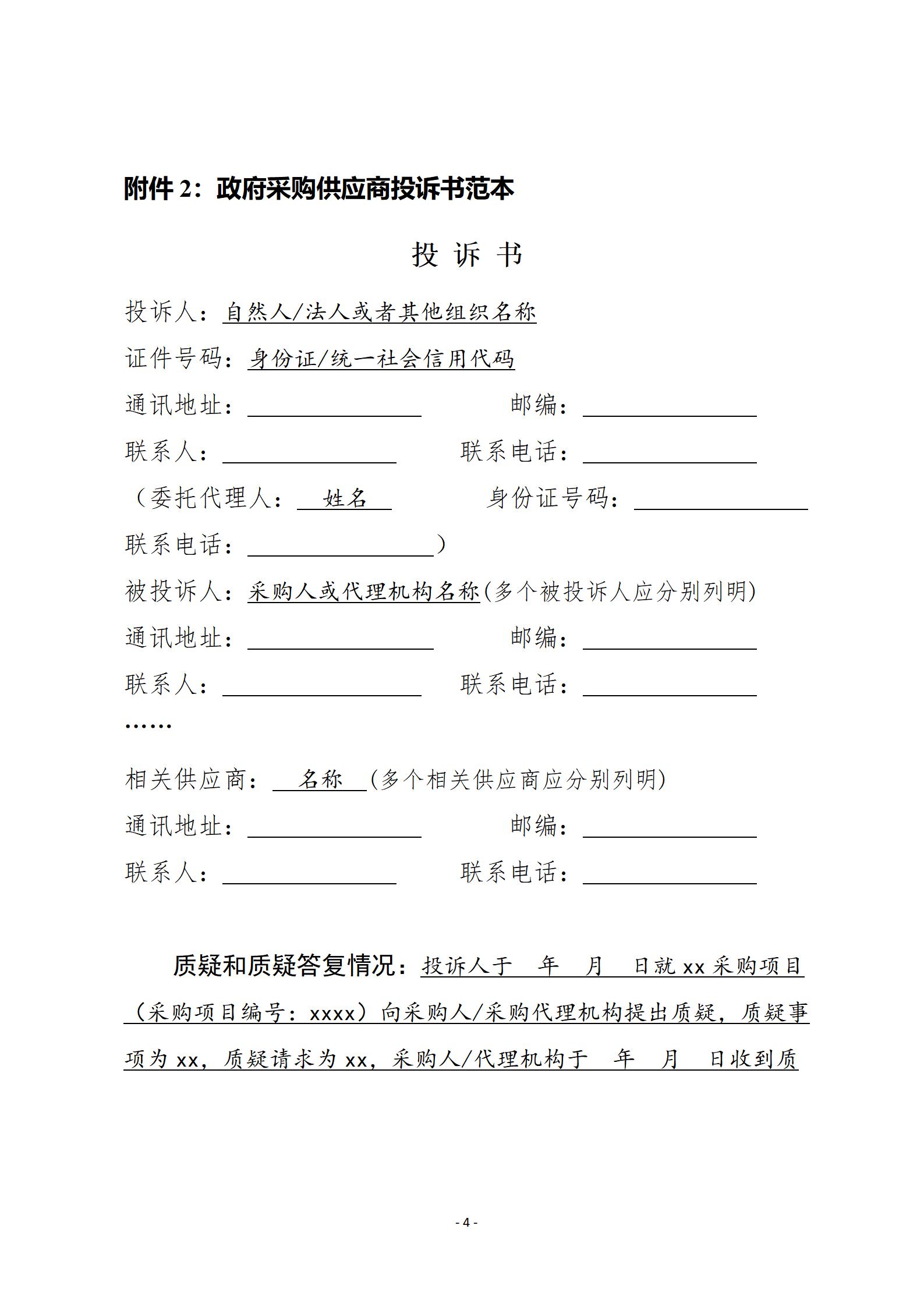 政府采購供應(yīng)商投訴書范本.doc