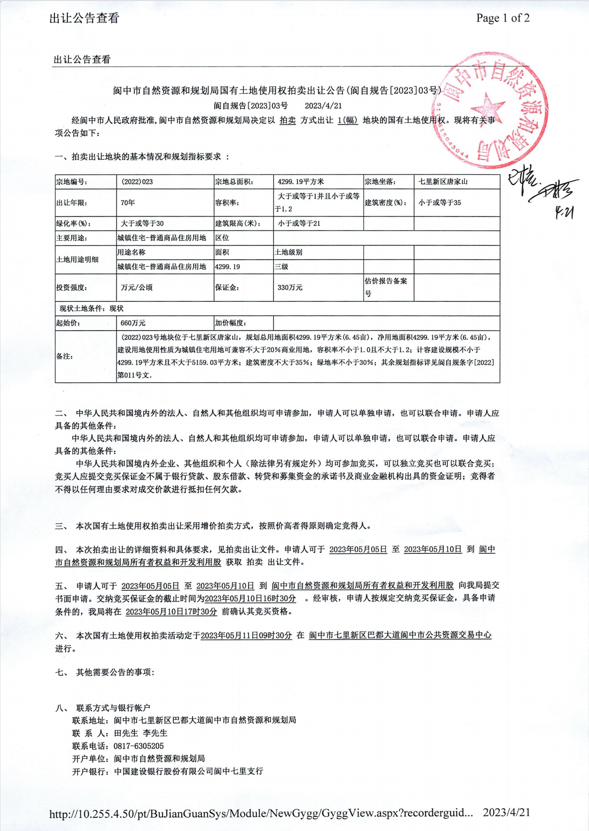 閬中市自然資源和規(guī)劃局國有土地使用權(quán)掛牌出讓公告(閬自規(guī)告[2023]03號)