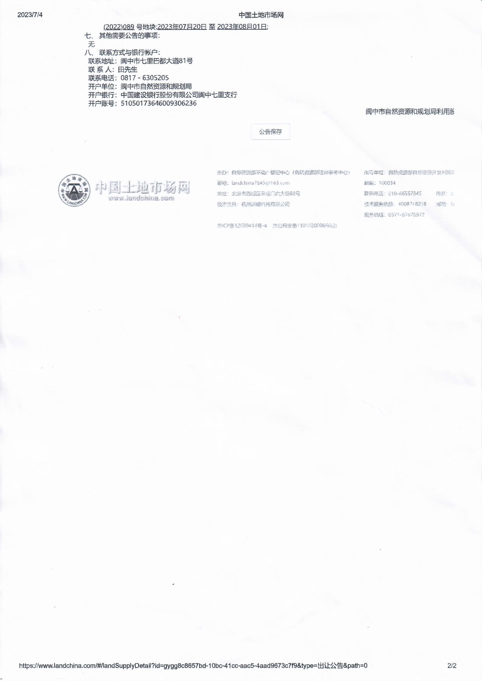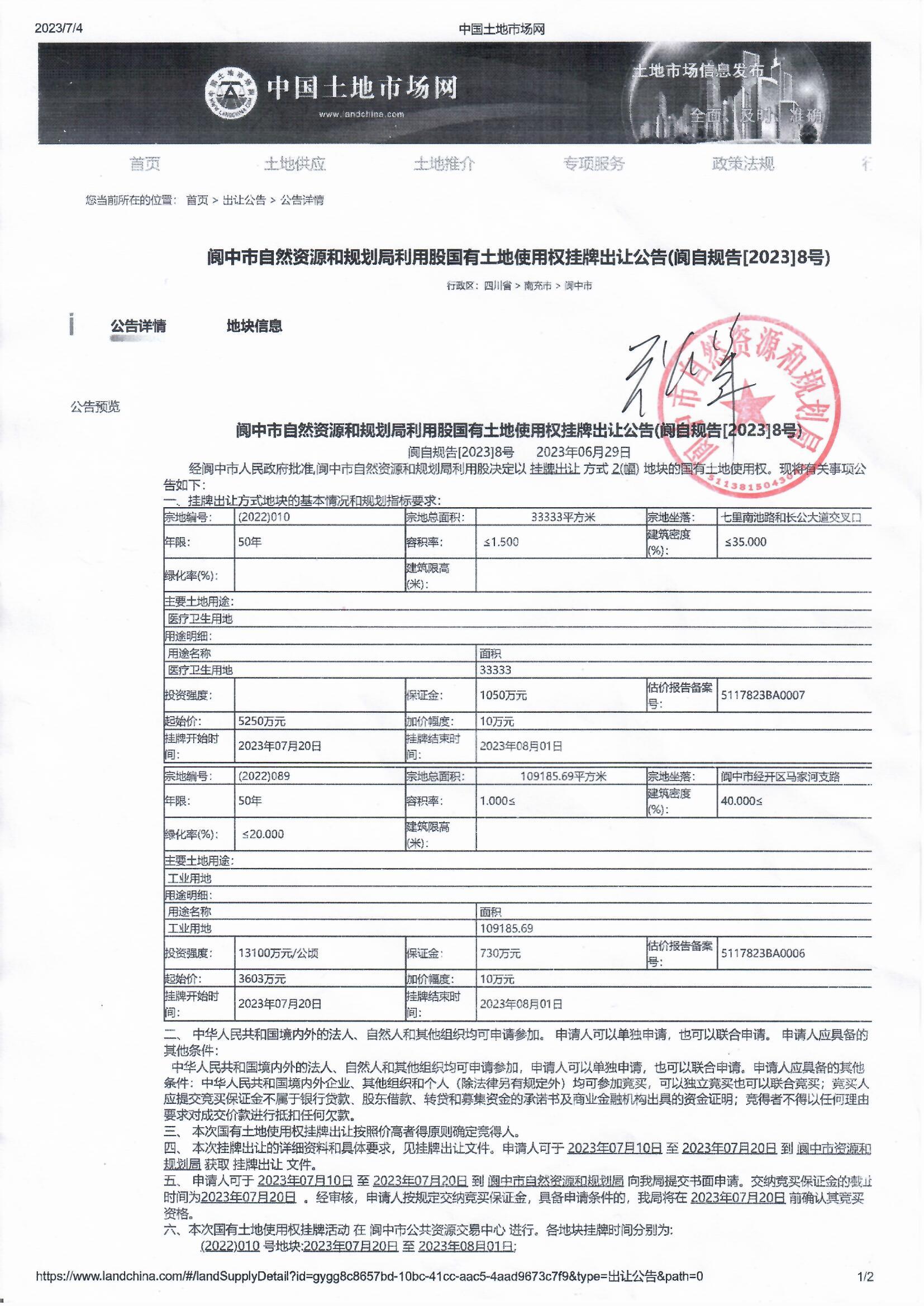 閬中市自然資源和規(guī)劃局利用股國有土地使用權(quán)掛牌出讓公告(閬自規(guī)告[2023]8號)