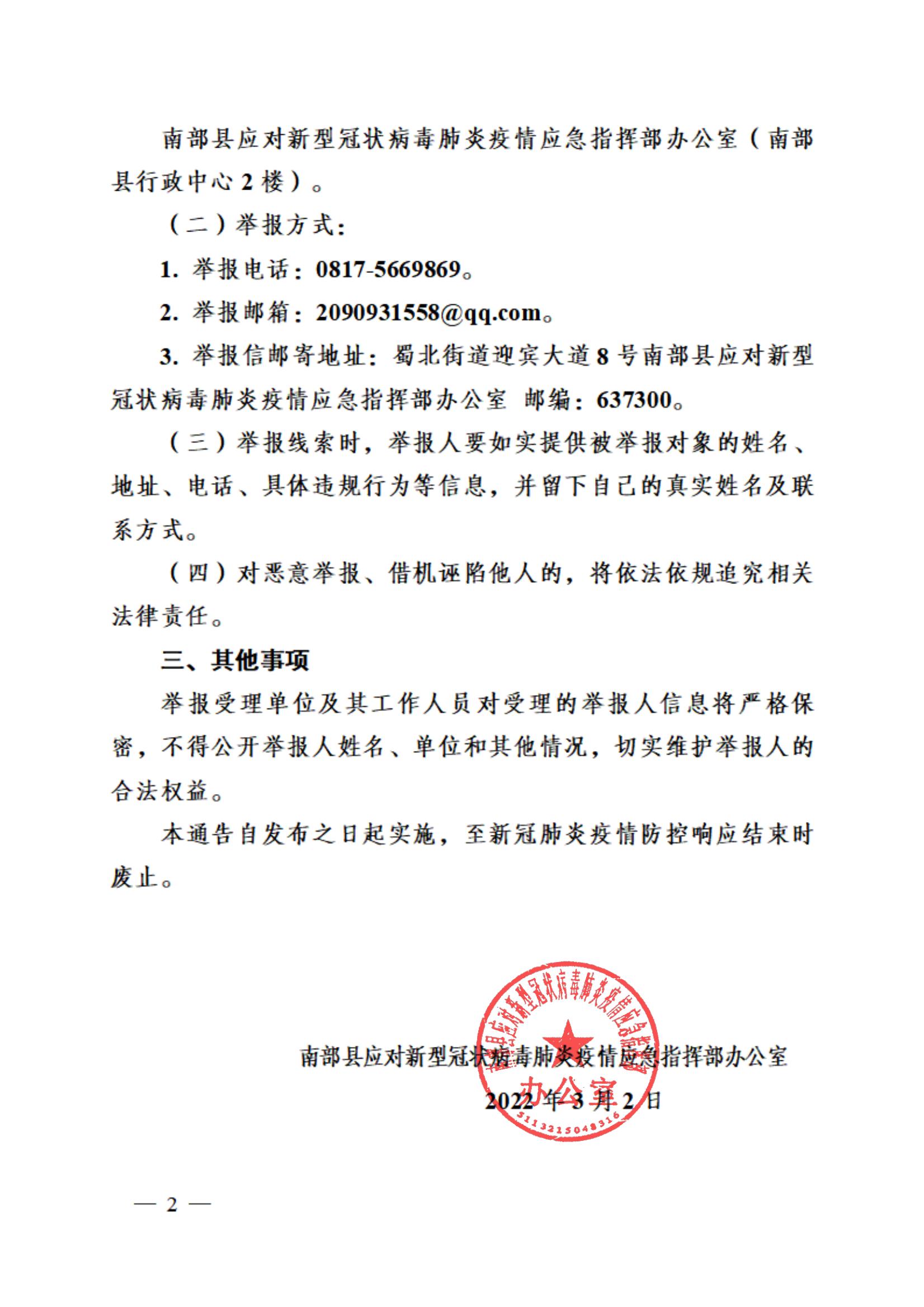南部縣關(guān)于積極舉報新冠肺炎疫情重要線索的通告