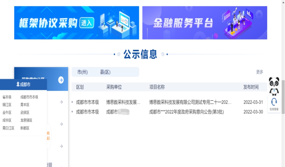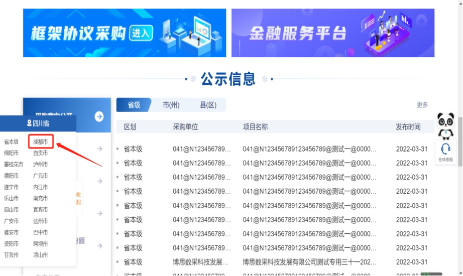該功能是用戶進(jìn)入四川政府采購網(wǎng),點(diǎn)擊對(duì)應(yīng)市州或區(qū)縣后,整個(gè)門戶網(wǎng)頁信息將顯示對(duì)應(yīng)市州或區(qū)縣相關(guān)工作動(dòng)態(tài)和公告信息。