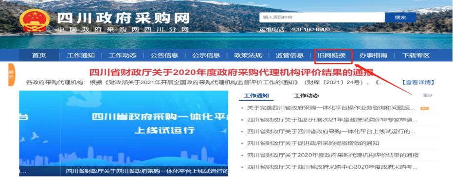點(diǎn)擊“舊網(wǎng)鏈接”跳轉(zhuǎn)四川政府采購網(wǎng)舊門戶網(wǎng)站,如下圖所示: