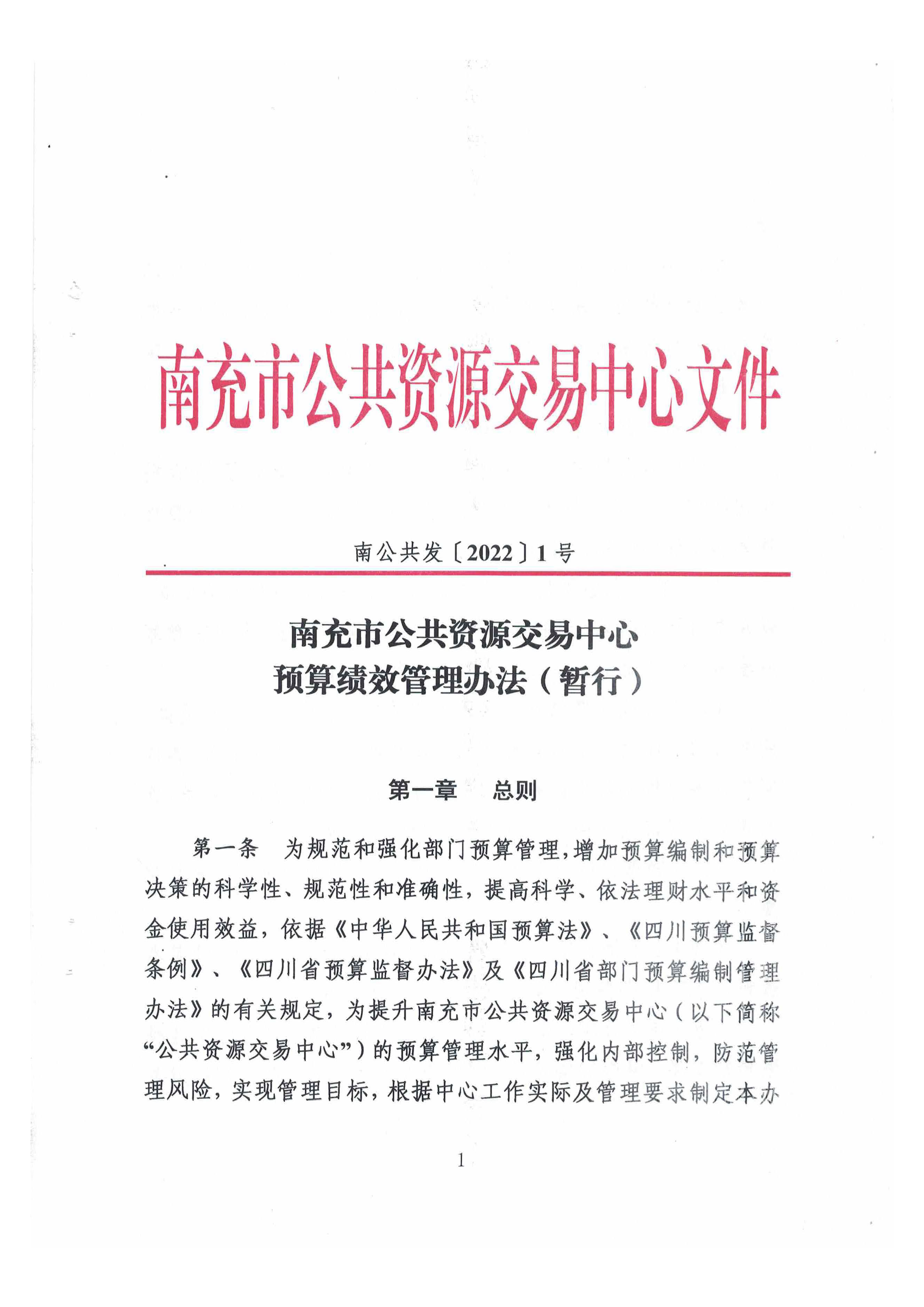 南充市公共資源交易中心預(yù)算績效管理辦法(暫行)