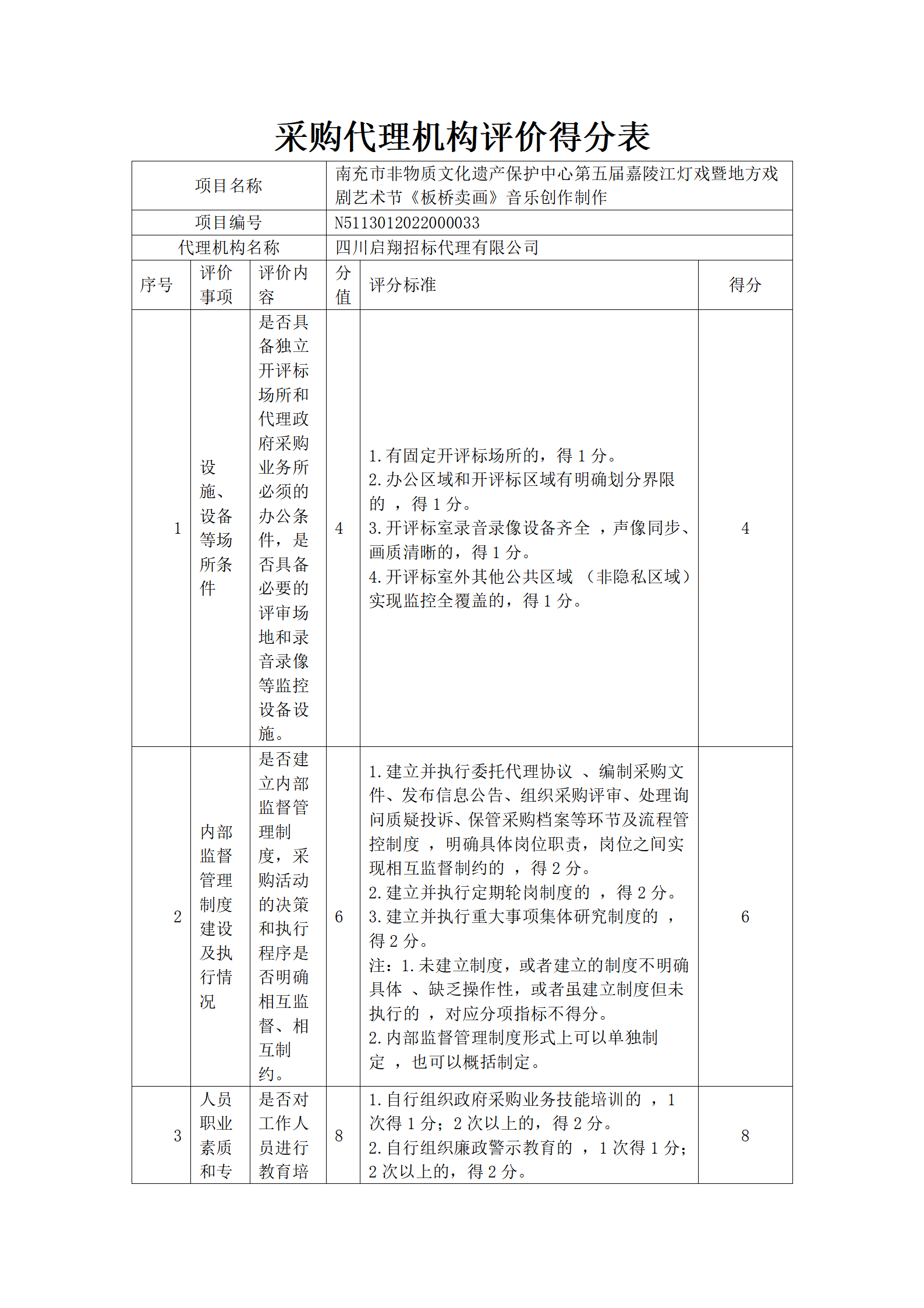 南充市非物質(zhì)文化遺產(chǎn)保護(hù)中心第五屆嘉陵江燈戲暨地方戲劇藝術(shù)節(jié)《板橋賣(mài)畫(huà)》音樂(lè)創(chuàng)作制作采購(gòu)代理機(jī)構(gòu)評(píng)價(jià)
